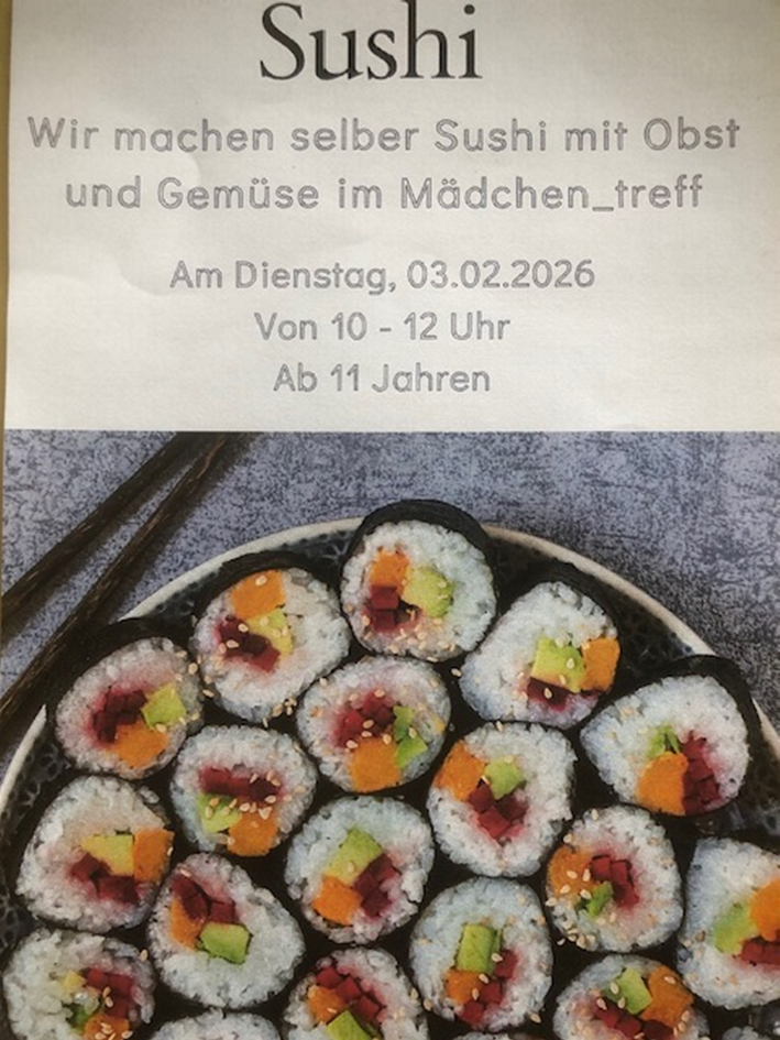 9 JanWegen der Wetterwarnung (sehr viel Schnee und Wind) heute am Freitag, den 9.1. bleibt auch der Mädchen_treff geschlossen. Wir sehen uns nächste Woche wieder!!!