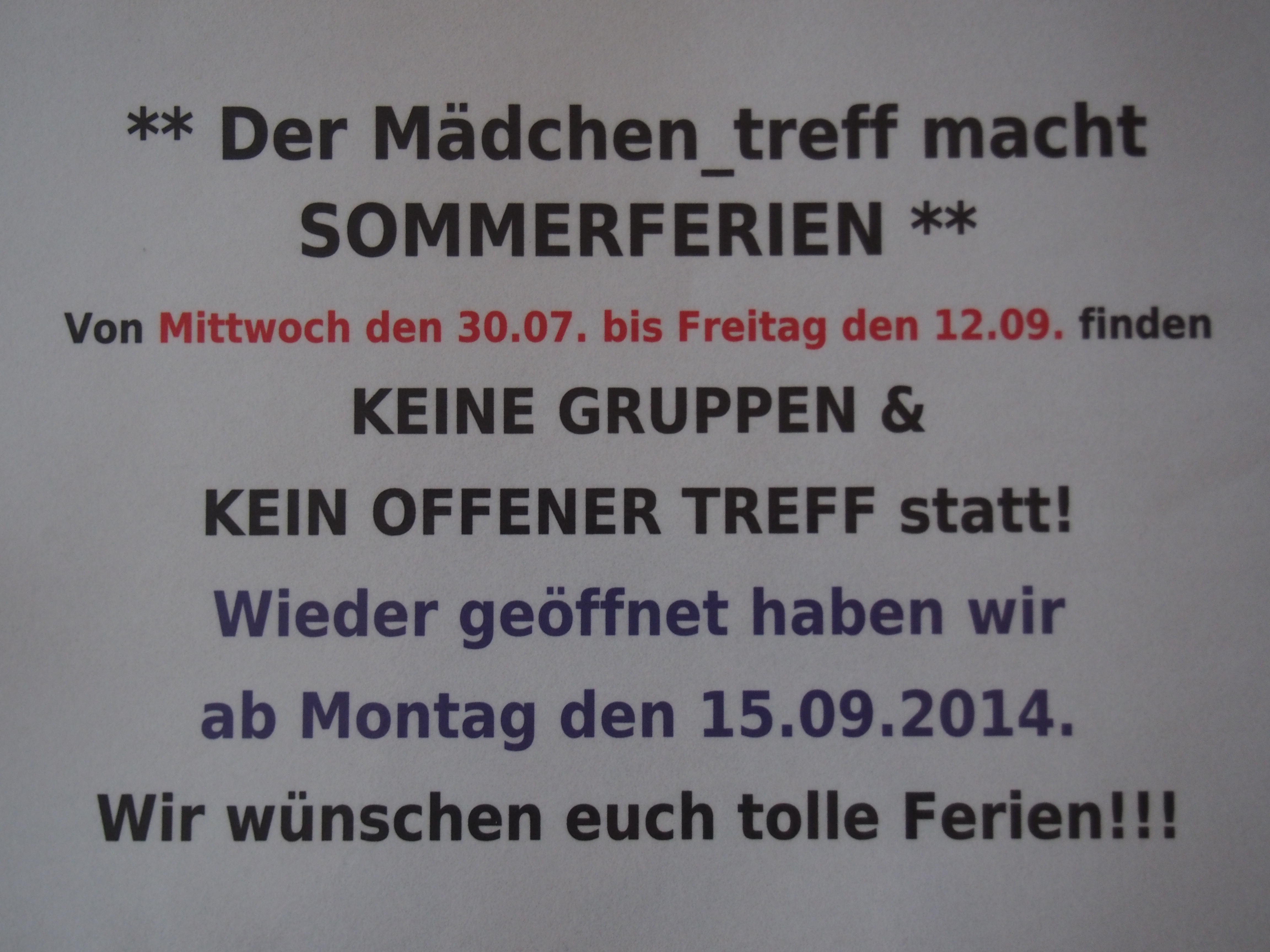** Sommerpause im Mädchen_treff **