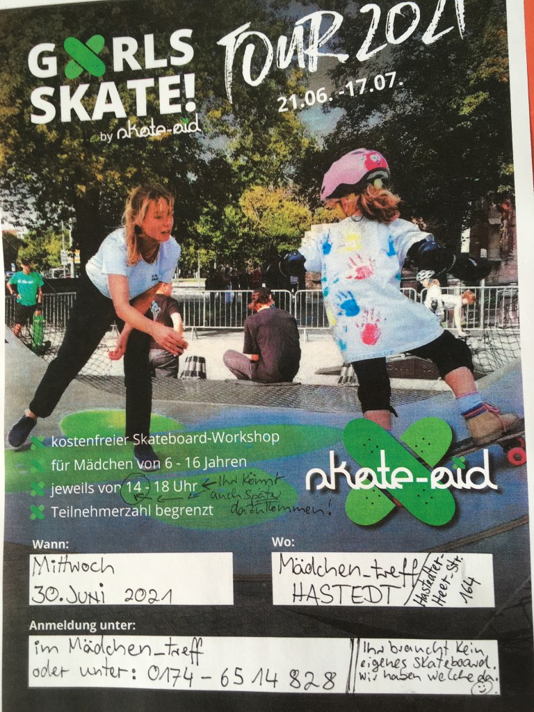 Girls – Skate – Tour 2021— am Mittwoch 30.6. kommen sie zu uns !—